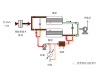 (1)VOCs循環脫附分流回收吸附技術該技術采用活性炭作為吸附劑,采用惰性氣體循環加熱脫附分流冷凝回收的工藝對有機氣體進...