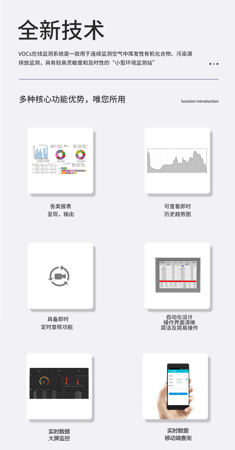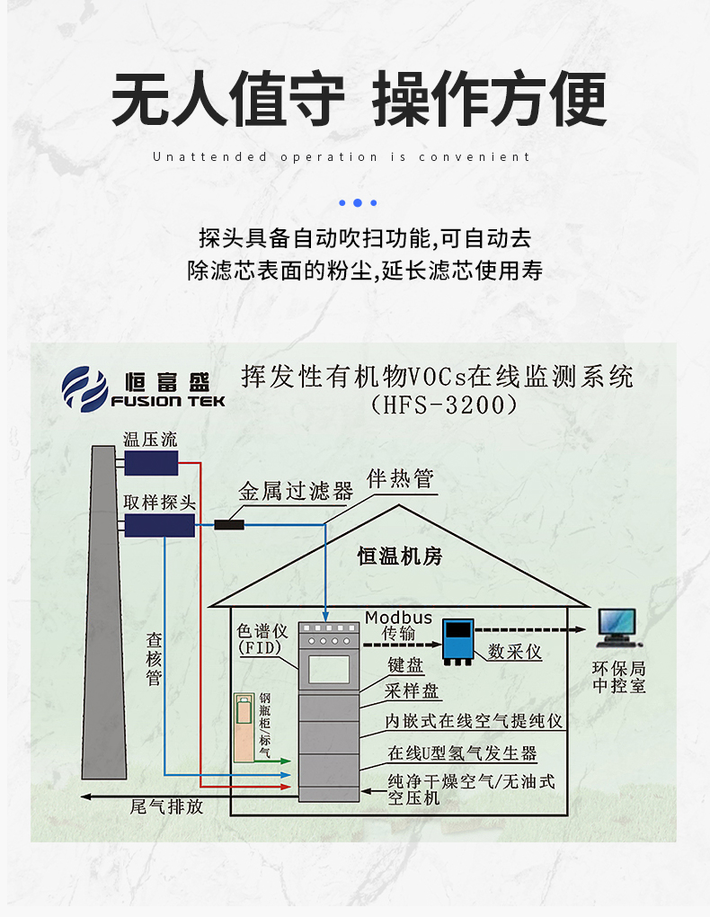 HFS-3200運用氣相色譜法結合火焰離子化偵測器為原理(GC-FID),不僅可即時監控氣體環境中的總烴(THC) 和非甲烷總烴(NMHC)外,還可針對特定的 VOCs 進行監測。